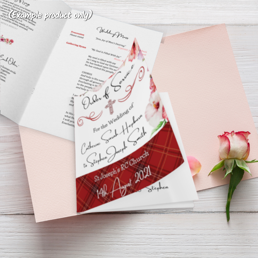Simply choose your options and we will email you with an easy form to walk you through your choices before getting down to designing your perfect booklet. We'll send through a pdf proof of all designs before sending them to print and hey presto, they'll be winging their way towards you in no time!