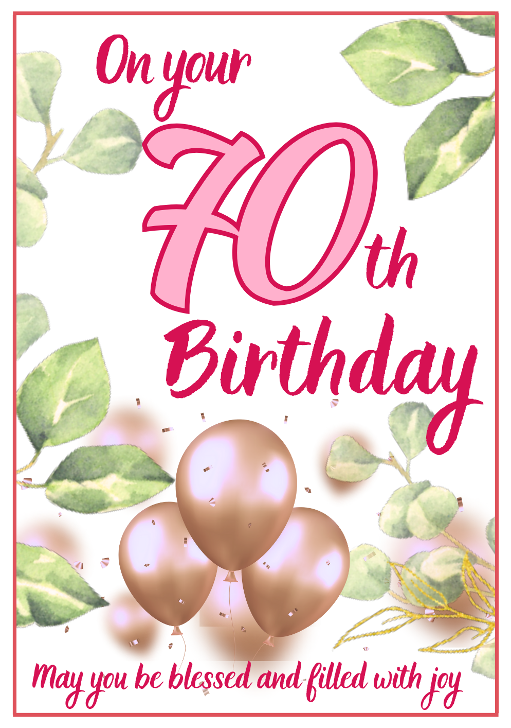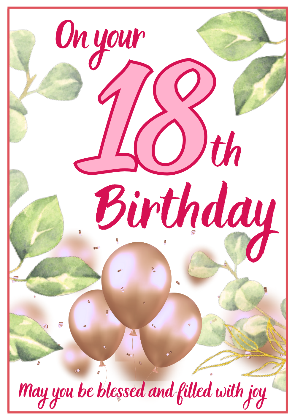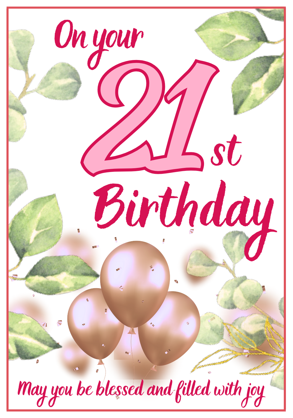 Front of card reads: On your 16th/18th/21st/30th/40th/50th/60th/70th/80th/90th/100th Birthday - May you be blessed and filled with joy