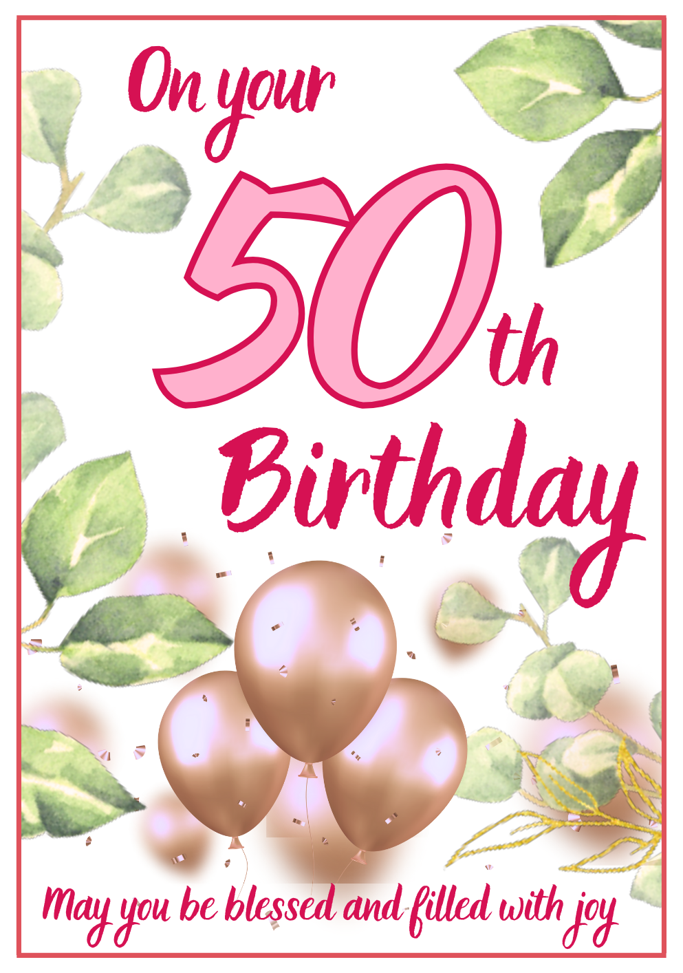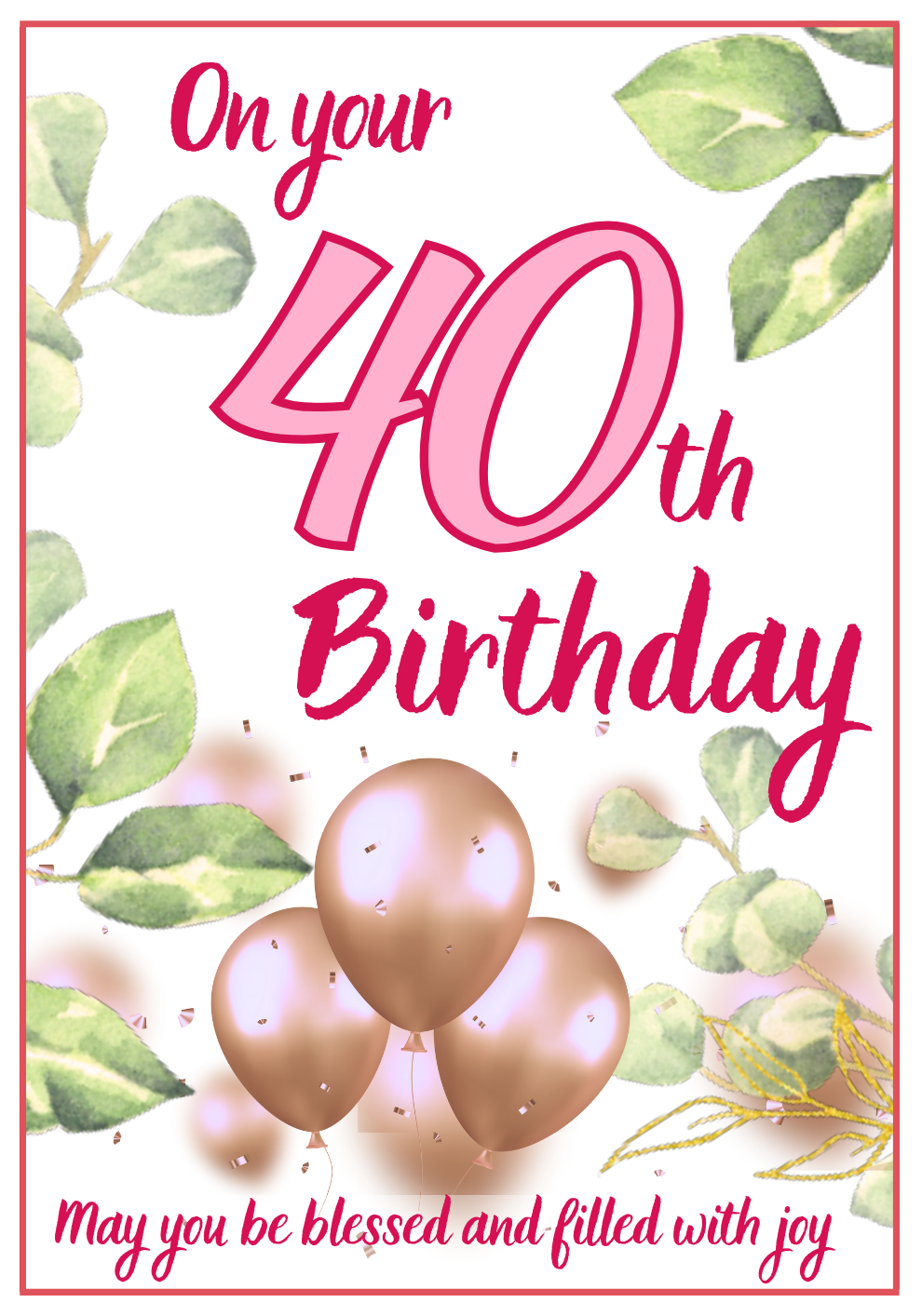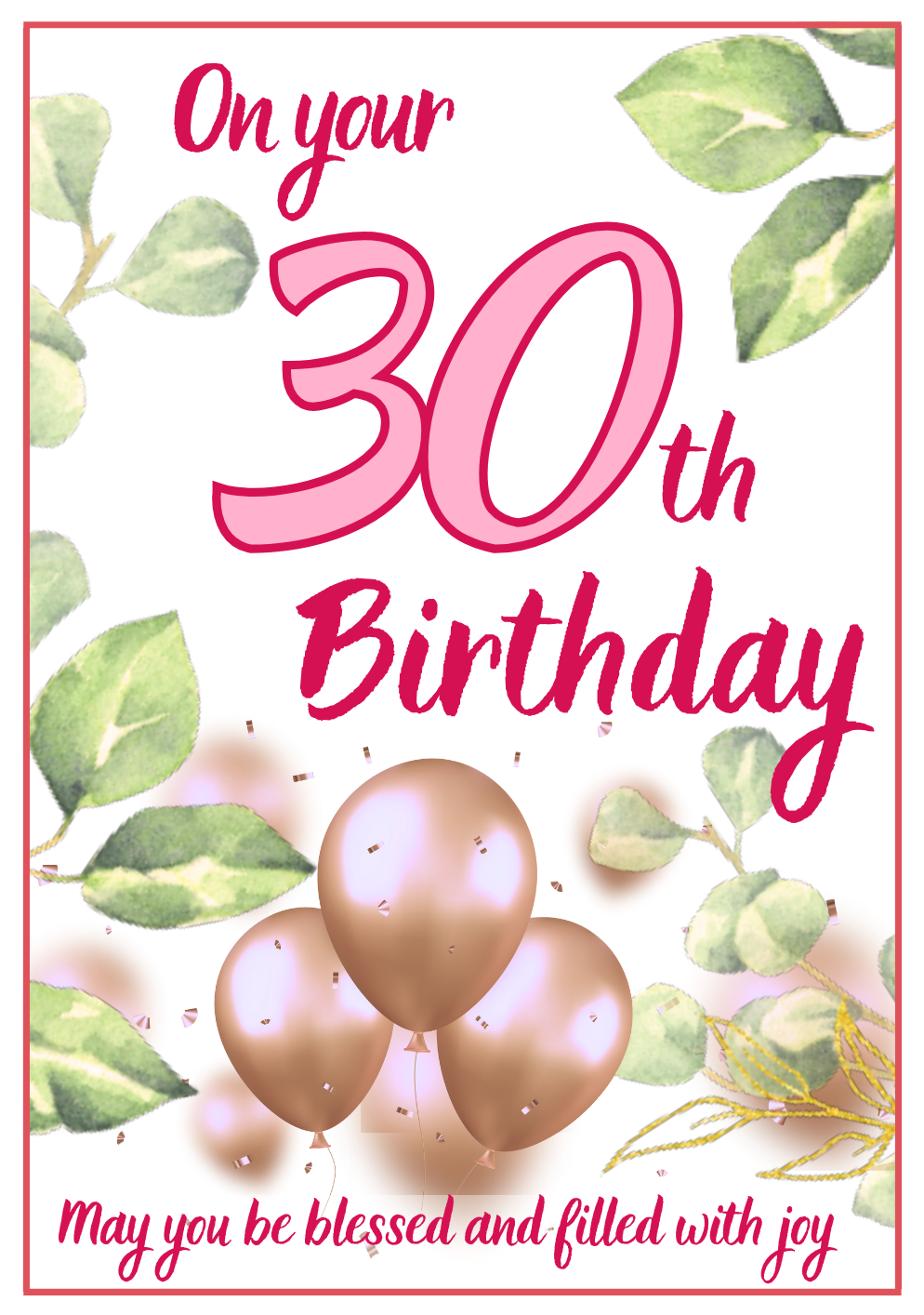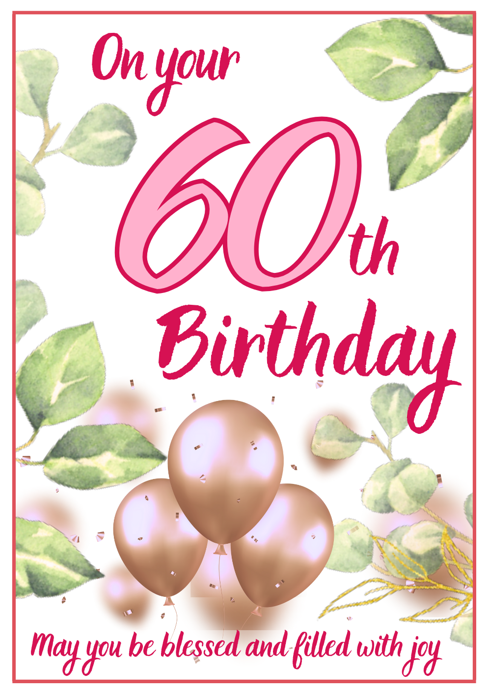 Front of card reads: On your 16th/18th/21st/30th/40th/50th/60th/70th/80th/90th/100th Birthday - May you be blessed and filled with joy